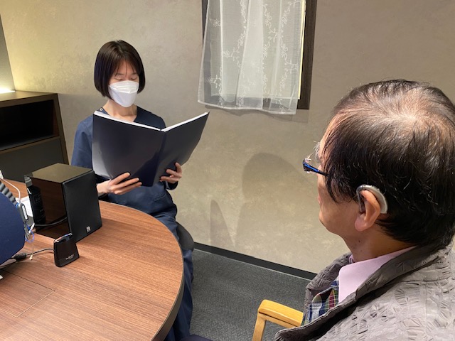 補聴器を装用しても聞き取りが向上しない場合は、短文の復唱などの聴覚リハビリテーションを行います。