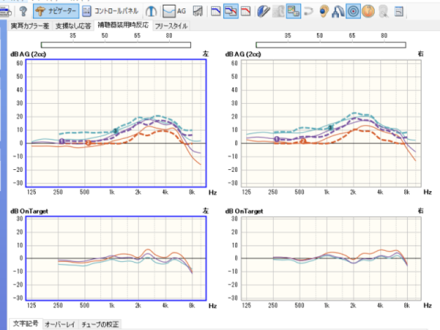 補聴器を装用して閾値を測定し処方式どおりになるように調整します。人の判断誤差が含まれています。