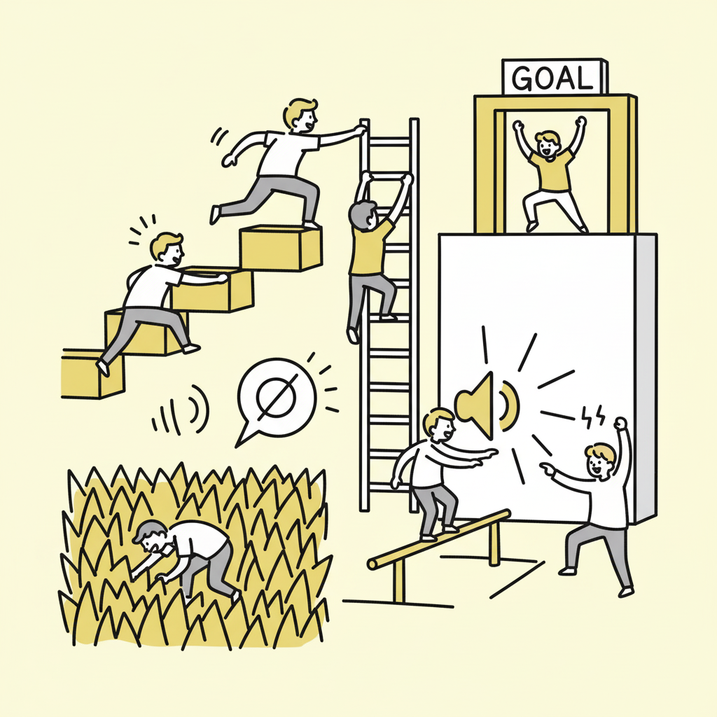 補聴器で成功するには、多くのハードルを乗り越える必要があります。SASUKEのような障害物競走のように、すべての課題を克服してゴールにたどり着かなければなりません。